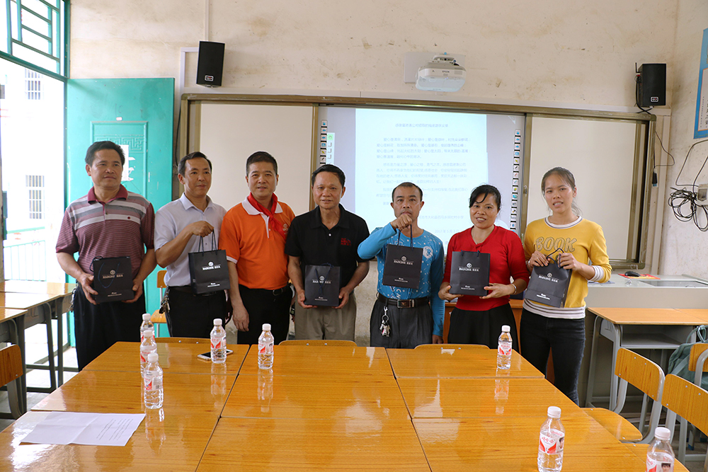 雷諾表愛心小組在總經理詹江洲先生的帶領下,從南寧市區出發,一路上綠水青山風景秀美,但在快要到達同社村的山路上,我們真正見識了九曲十八彎的大山路。經過3個多小時的長途跋涉,我們的愛心車輛終于抵達同社村小學,遠遠就看到學校的孩子在校門口等待我們,當孩子們親手為我們系上鮮艷的紅領巾,雷諾表愛心小組的每個成員的使命感愈加強烈。