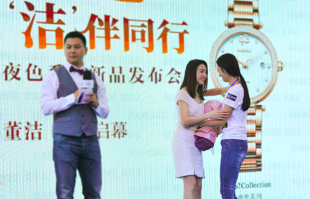 董潔老師與雷諾表總經理詹江洲先生接受媒體采訪,并合影留念。