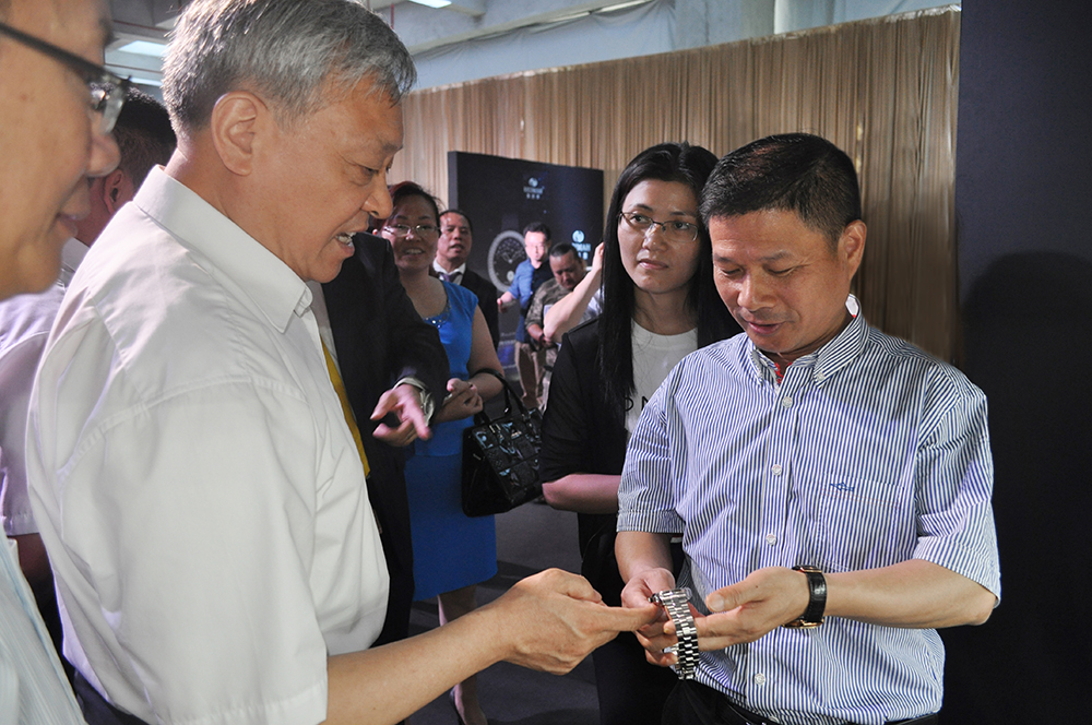 雷諾表董事長詹西洲先生親自為參觀領(lǐng)導(dǎo)講解春秋系列設(shè)計靈感