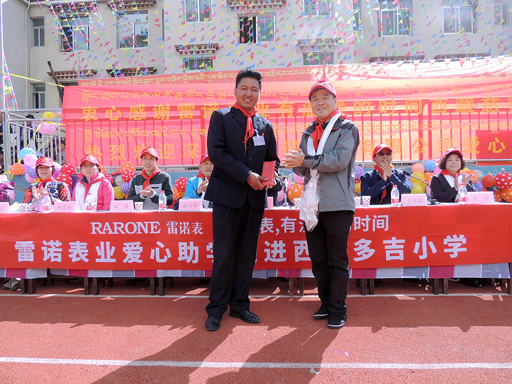 雷諾表業(yè)總經(jīng)理詹江洲先生表示,雷諾表業(yè)今天所盡的綿薄之力比起工作在這里的援藏干部,在這里教書育人的老師們是微不足道的,堅(jiān)守在邊疆無私奉獻(xiàn)的人更讓人感動(dòng)和敬佩!今天我們的付出也僅僅是杯水車薪微不足道,我們只是希望通過這樣的助學(xué)活動(dòng),能夠在社會(huì)上倡導(dǎo)這樣的愛心風(fēng)尚。通過這樣的助學(xué)活動(dòng),努力承擔(dān)對(duì)社會(huì)的責(zé)任,并始終把這種責(zé)任看作是企業(yè)發(fā)展的強(qiáng)大動(dòng)力。我們時(shí)刻懷著一顆感恩之心,積極回報(bào)社會(huì),我們深知只有企業(yè)不斷地發(fā)展,才能為社會(huì)做出更大的貢獻(xiàn)。