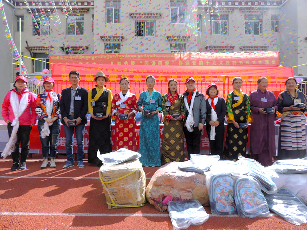 雷諾表業(yè)總經(jīng)理詹江洲先生攜團(tuán)隊(duì)遠(yuǎn)赴邊疆,走進(jìn)西藏波密縣多吉鄉(xiāng)小學(xué),提前和邊疆的孩子們歡度節(jié)日,為邊疆的小朋友們送去了祝福和溫暖,孩子們以當(dāng)?shù)鼐哂忻褡逄厣姆沁z歌舞-帕雄熱巴舞迎接遠(yuǎn)道而來的客人。