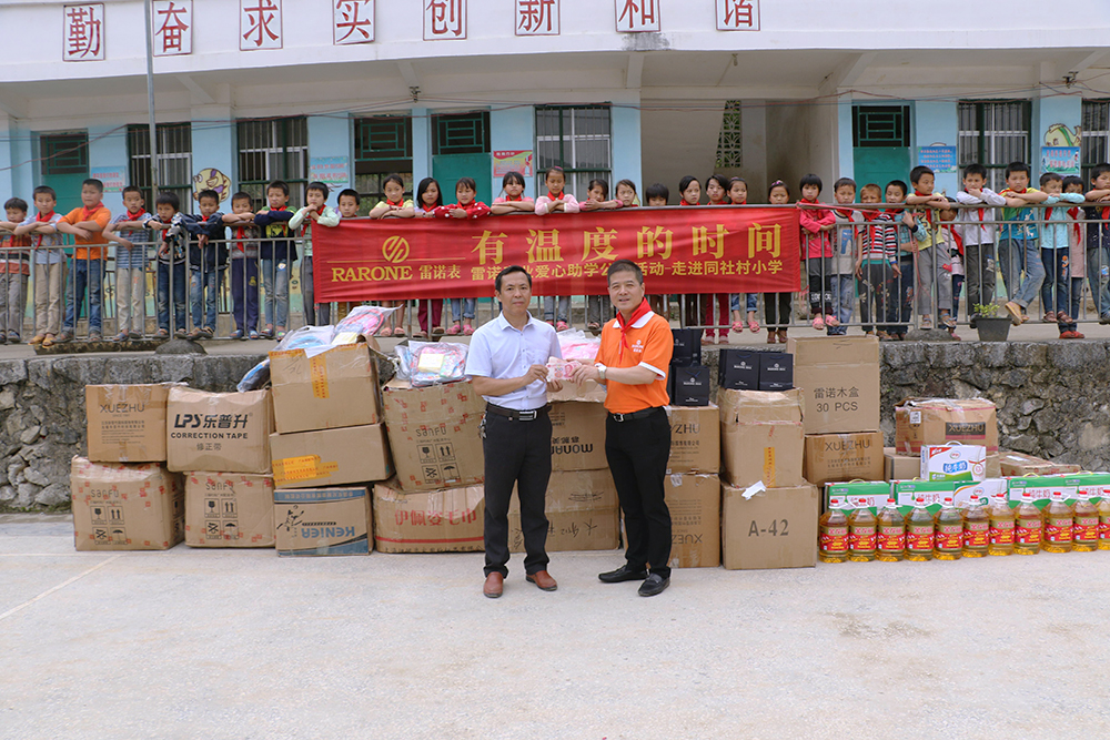 雷諾表愛心小組帶著滿滿的社會責任感走進同社村小學,詹總表示這并不是雷諾表第一次參與愛心公益活動,雷諾表的每一次愛心行動只是拋磚引玉,希望能夠影響更多的人去關注公益事業,人人貢獻一點愛,這個世界會更精彩。更何況與駐守大山的老師相比,我們的愛心助學行動做得遠遠不夠,我們更應該向這些默默無聞的教育工作者學習。雷諾表為同社村小學的每一位老師送上雷諾手表,用有溫度的時間和老師們一起陪伴孩子們的成長。