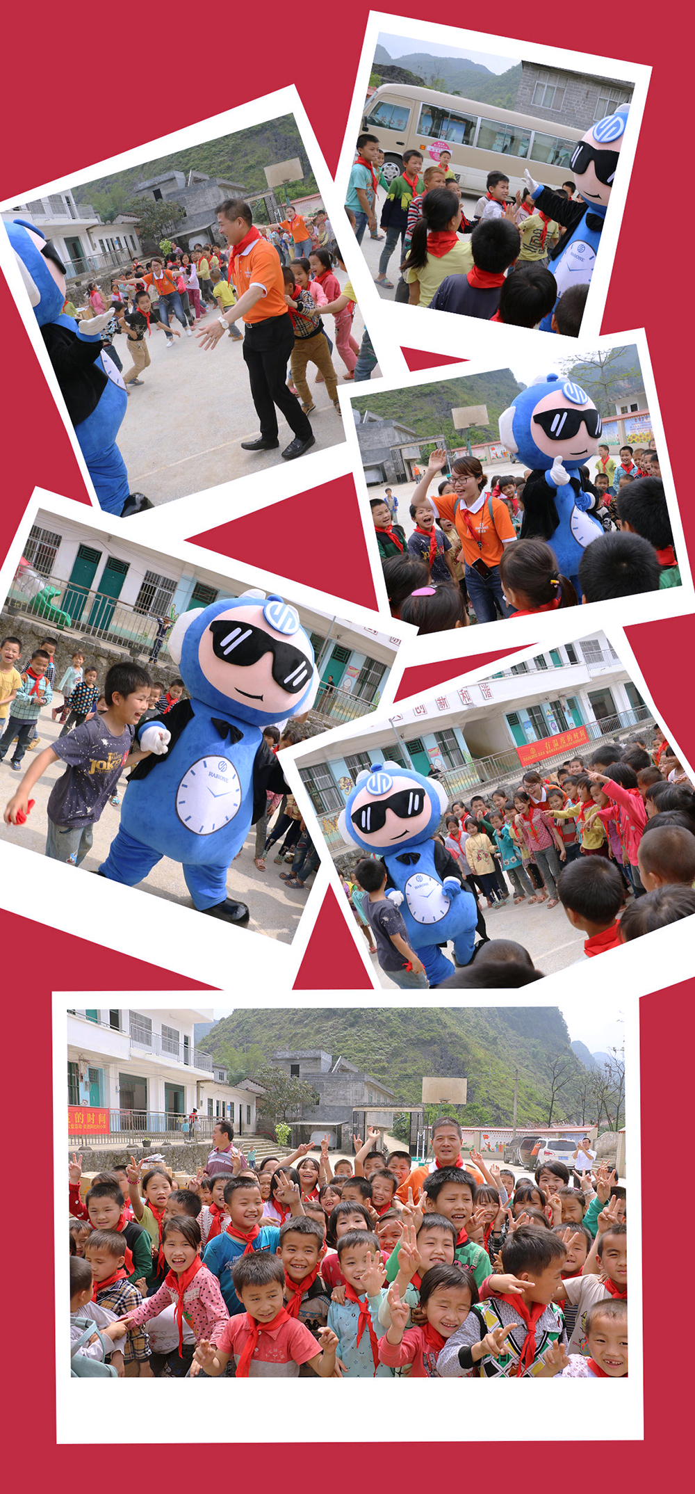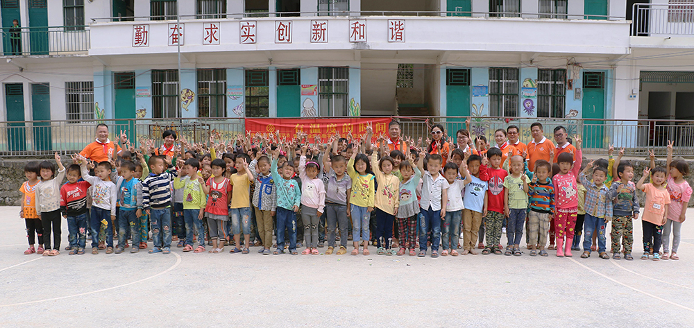 雷諾表愛心小組在總經理詹江洲先生的帶領下,從南寧市區出發,一路上綠水青山風景秀美,但在快要到達同社村的山路上,我們真正見識了九曲十八彎的大山路。經過3個多小時的長途跋涉,我們的愛心車輛終于抵達同社村小學,遠遠就看到學校的孩子在校門口等待我們,當孩子們親手為我們系上鮮艷的紅領巾,雷諾表愛心小組的每個成員的使命感愈加強烈。